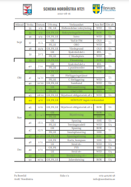 Utöver helgövningar och kvällspass så anordnas också veckolånga kurser i samband med skollov. Dessa kurser djupdyker i ett ämne som vintertjänst, överlevnad eller teknik.